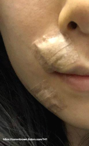 이후엔 3-5일에 한번씩 떼어서 비누칠로 깨끗하게 닦아준 뒤 다시 테이핑하면 된다.