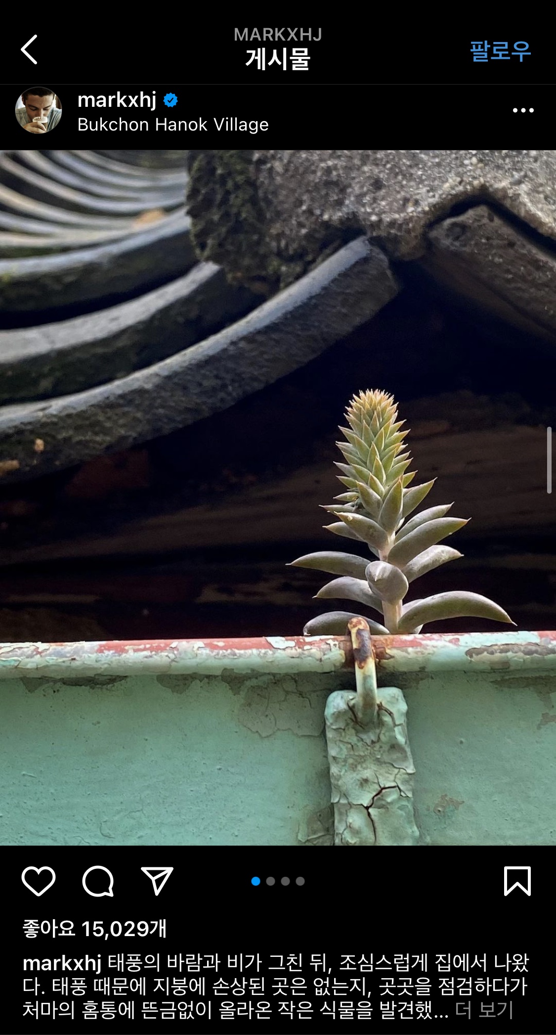 한옥은 기와밑에 흙이 있어, 가끔 기와 사이사이로 이런 작은 식물들이 올라온다.