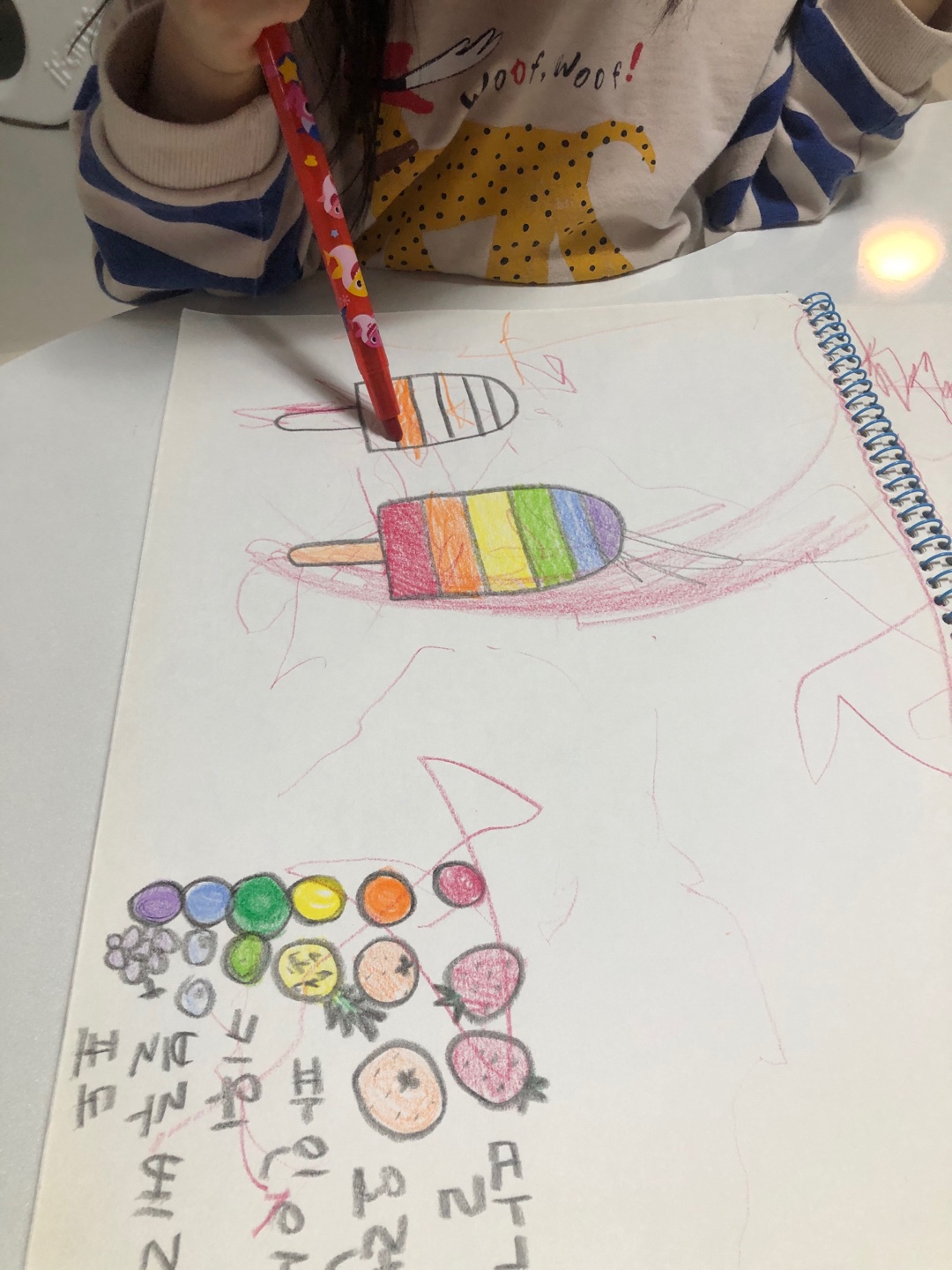 검은색 색연필로 아이스크림을 그려주고 내가 먼저 색칠해서 어떻게 하는지 보여주고, 아이보고 따라하게 한다.