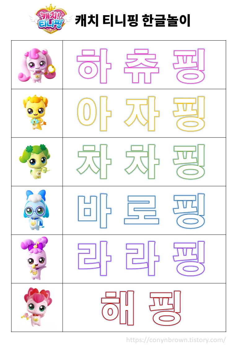 [36개월 육아일상] 엄마표 캐치 티니핑 한글놀이(무료배포) 본문