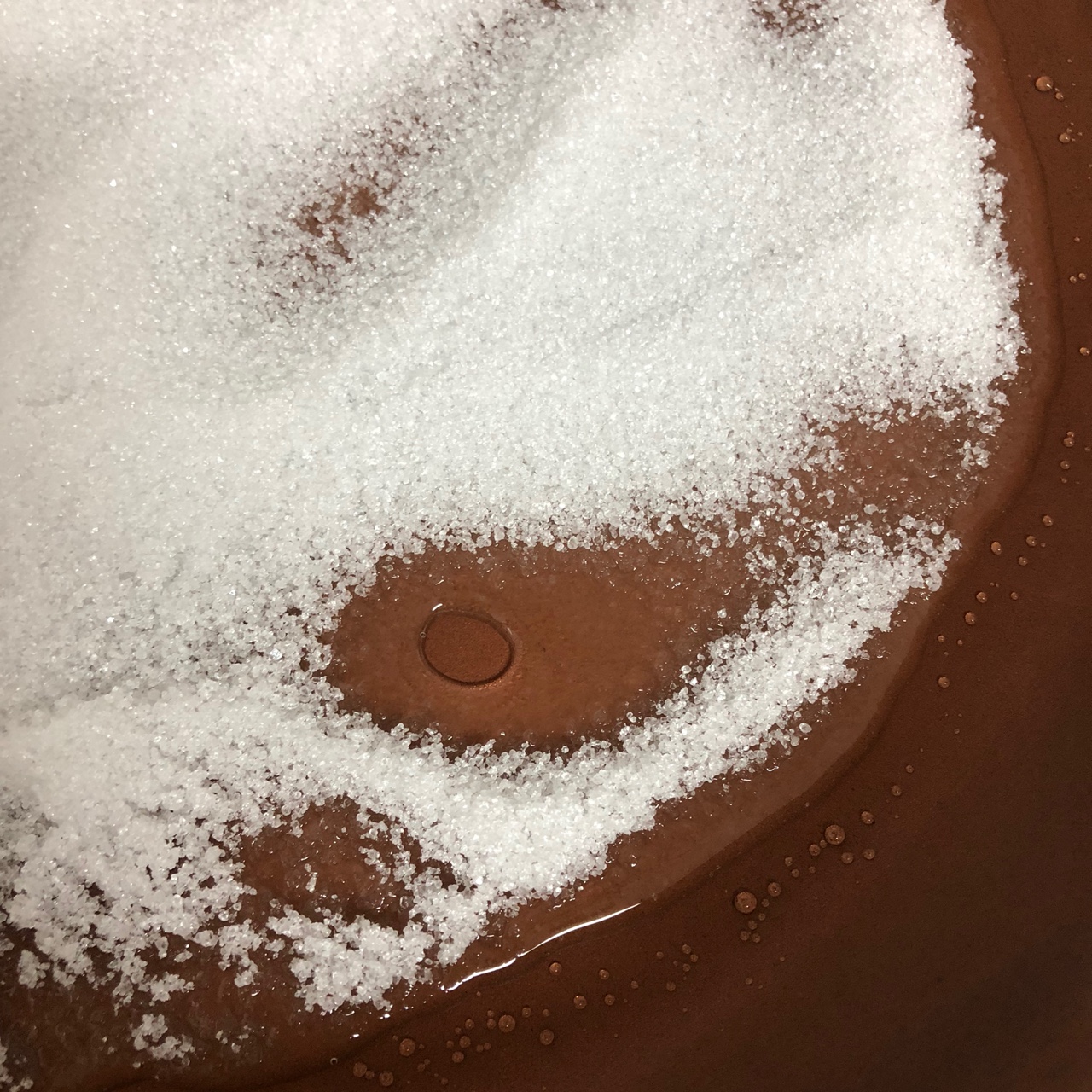 가장 자리부터 자일리톨 가루가 녹는게 보이는데