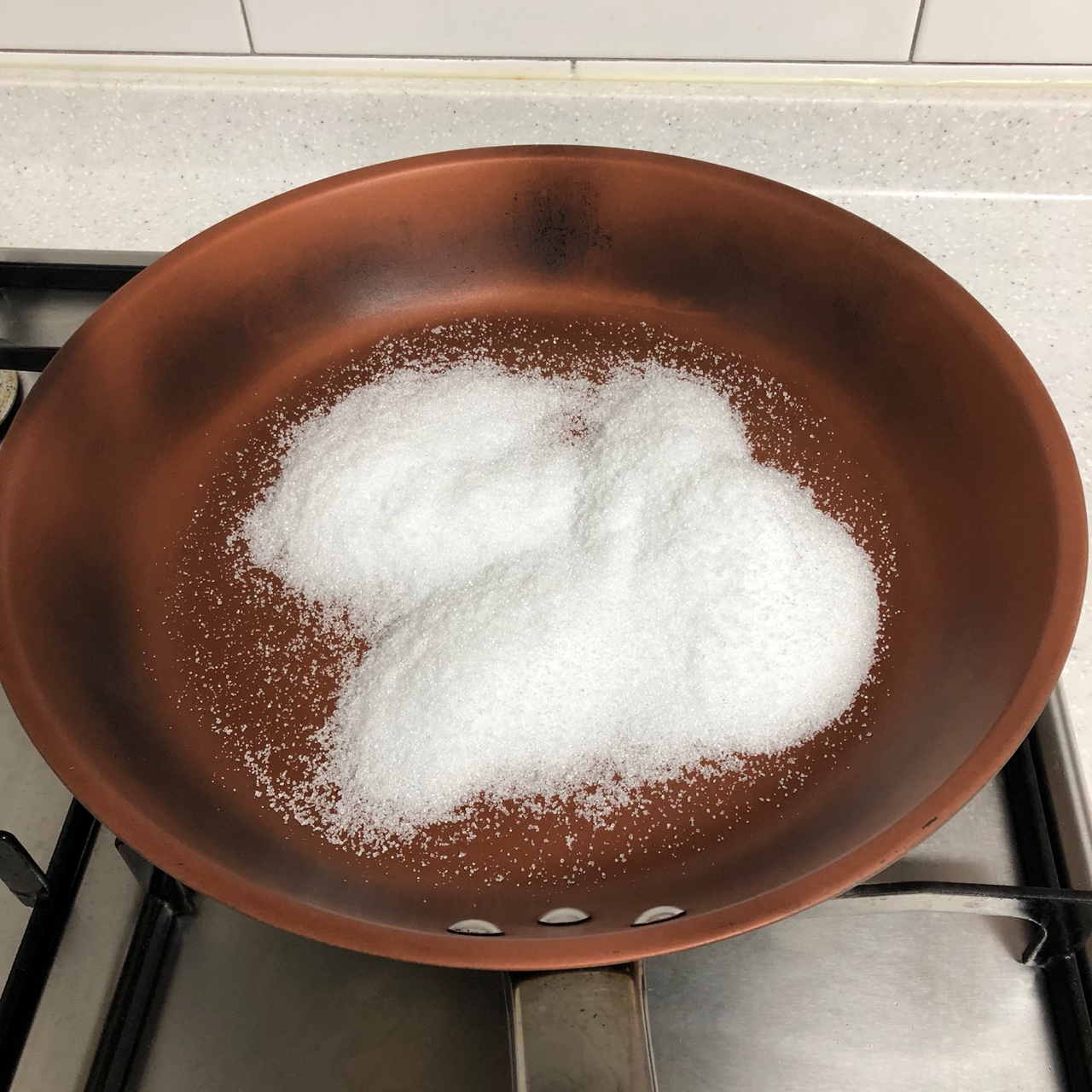 후라이팬에 굳은 채로 남은 자일리톨을