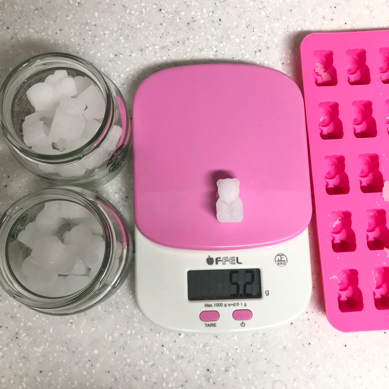 150g 사용하니 곰돌이 실리콘몰드 25개 딱맞게 나옴