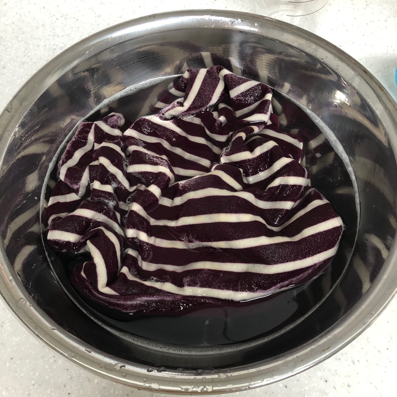 30시간 정도 이렇게 담궈놨다가 얼룩이 어느정도 빠졌는지 확인해보고, 아직 얼룩이 많이 남았으면 1시간 정도 더 담궈둔다.