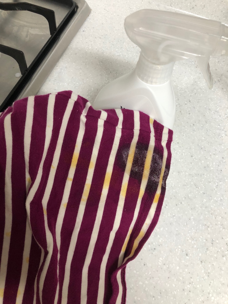 마이비 얼룩제거제는 반나절? 하루? 안에는 뿌려줘야 효과가 더 좋은 것 같다. 이미 물들은 채로 며칠 지난 옷이나 진흙 자국엔 효과가 없었고, 음식, 과일은 기가 막히게 잘 지워진다.