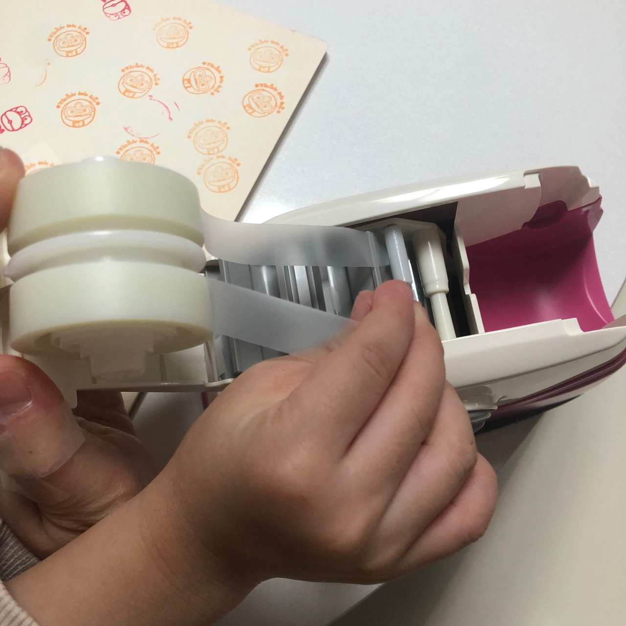 - 계속 누르기만 하면 테이프가 엉겨붙어 고장날 수 있음. 처음 사용할 때 한 번 눌렀으면 위에 올라온 테이프 다 뗀 뒤에 다시 눌러야 한다고 알려줘야함.