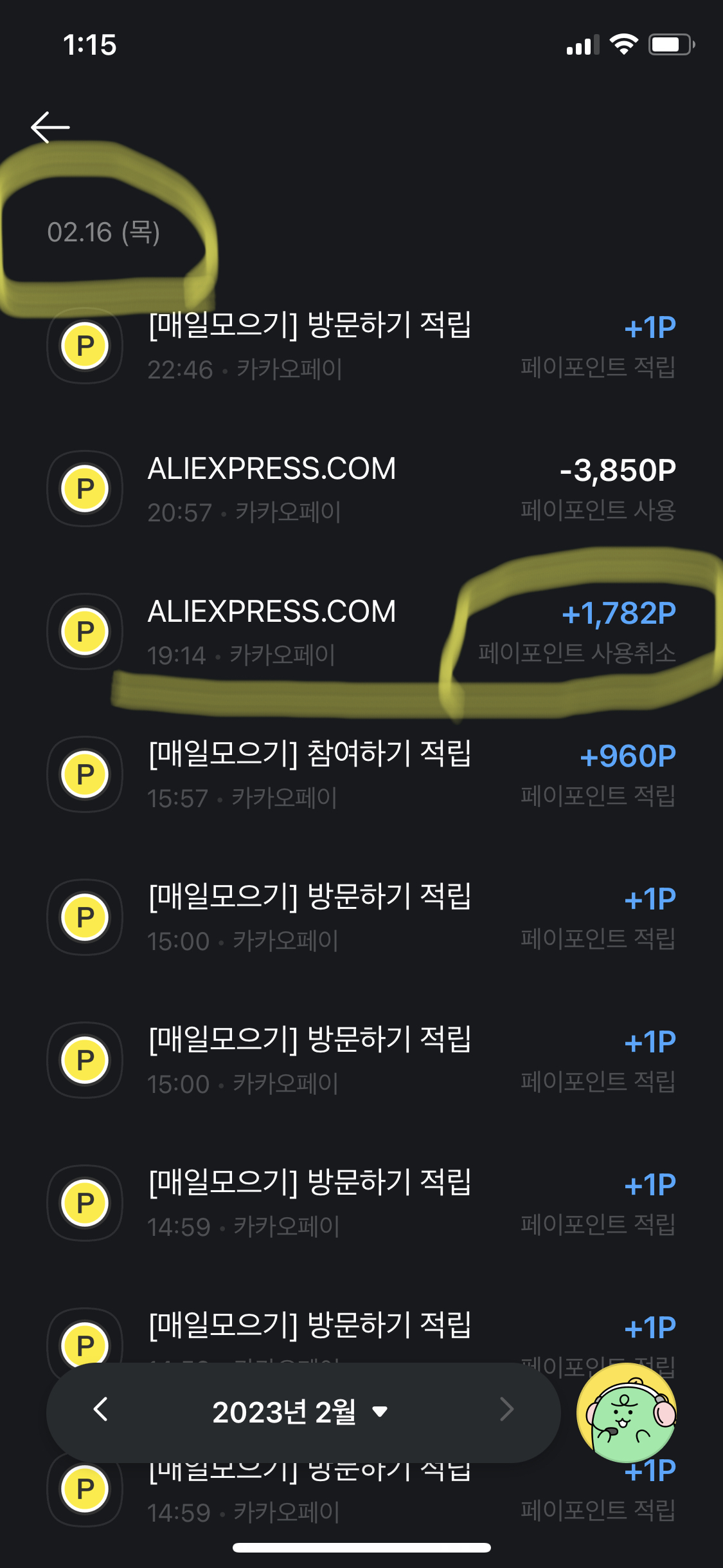 결제했었던 카카오페이로 돌아가보니 알리로부터 결제했던 금액 그대로 환불받을 수 있었다.