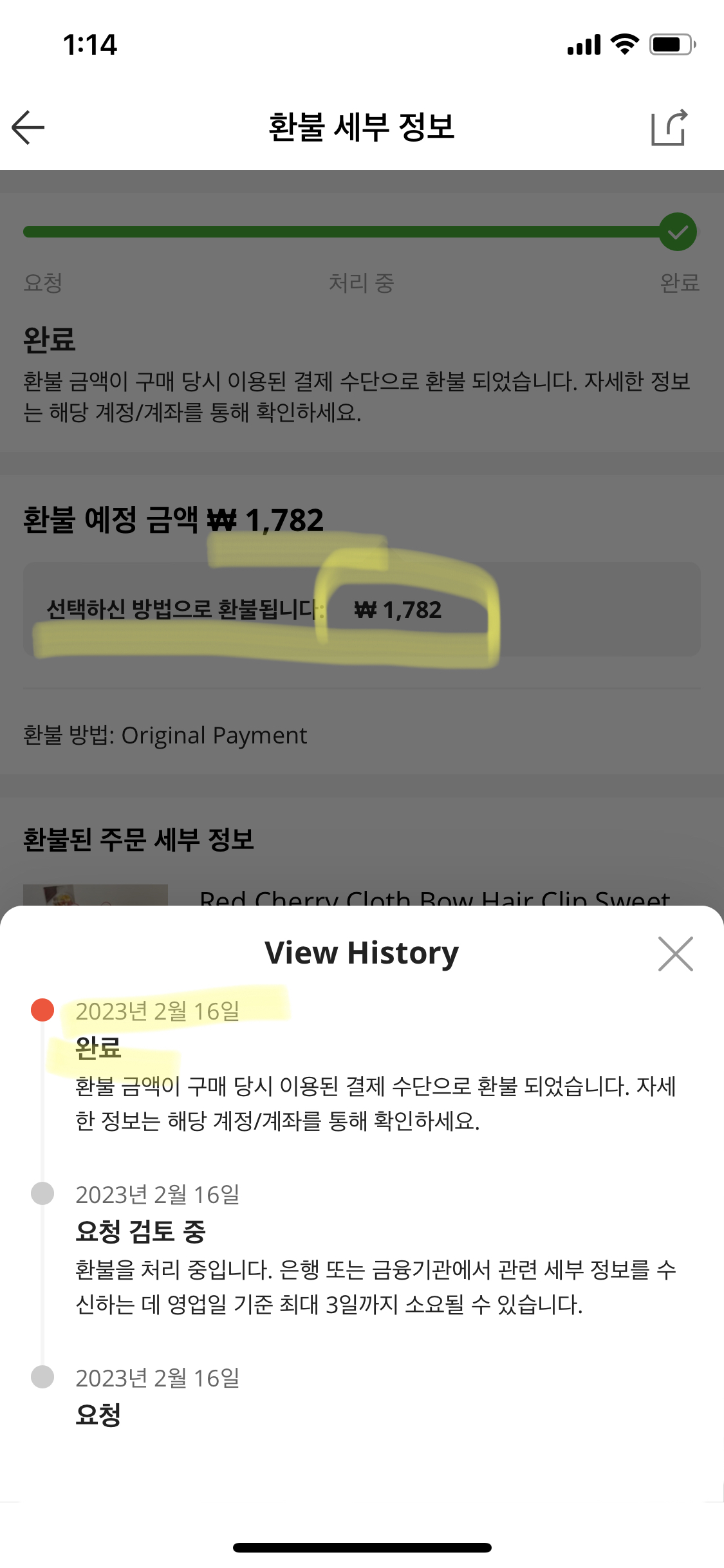 이후에 환불 진행이 어떻게 되어가는지 체크만 해주면 된다.