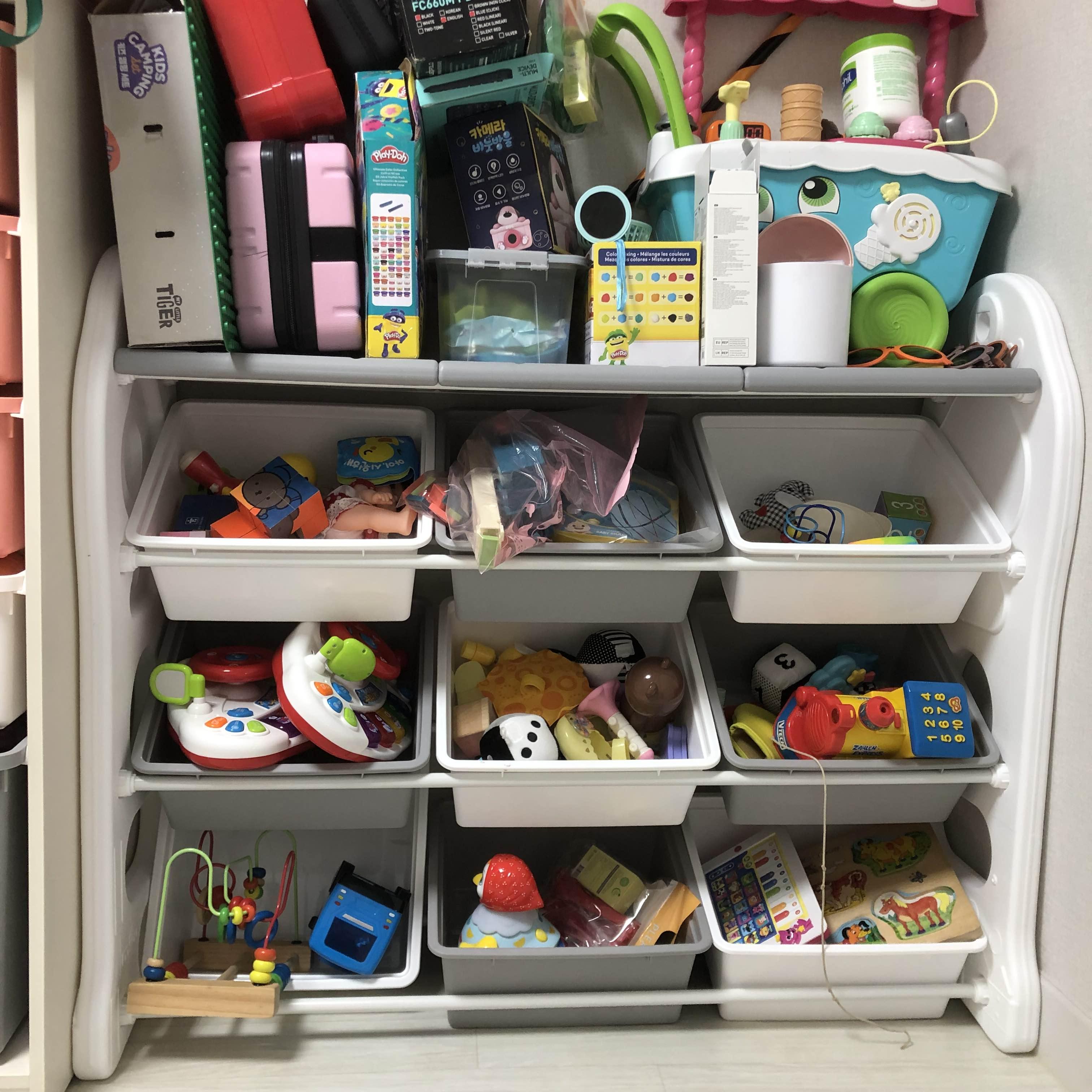 - 바구니 사이즈가 못내 아쉽다..! 큰 장난감은 비스듬히 겨우 넣는다쳐도 꺼낼때 윗 바구니에 걸릴때가 많음